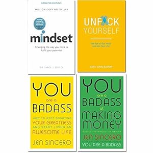 Mindset carol dweck, unfck yourself, you are a badass, you are a badass at making money 4 books collection set. Description:- Mindset - Updated Edition: Changing The Way You think To Fulfil Your Potential Dweck explains why it's not just our abilities and talent that bring us success-but whether we approach them with a fixed or growth mindset. She makes clear why praising intelligence and ability doesn't foster self-esteem and lead to accomplishment, but may actually jeopardize success. Unf*ck Yourself: Get out of your head and into your life This is blunt force trauma to the way you think life has to be for you. Most importantly, it is designed to give you an authentic leg up - one that feels genuine and right for you, and can propel you to new levels of greatness. Learn how to:Combat self-doubt, Deal with your inner critic, Stop comparing yourself to others, Break out of your rut. You Are a Badass: How to Stop Doubting Your Greatness and Start Living an Awesome Life In this refreshingly entertaining how-to guide, bestselling author and success coach, Jen Sincero, serves up 27 bitesized chapters full of hilariously inspiring stories, sage advice, easy exercises, and the occasional swear word. You Are a Badass at Making Money: Master the Mindset of Wealth YOU ARE A BADASS AT MAKING MONEY is the book you need if you've spent too much time watching money land in your bank account and then roll through your fingers. Jen Sincero went from living in a converted garage to traveling the world in 5-star luxury in a matter of years, and knows all too well the layers of BS one can get wrapped up in around money, as well as what it takes to dig your way out.