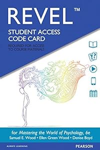 An introduction to psychology that focuses on applications to students' own lives Revel(TM) Mastering the World of Psychology provides students a solid introduction to the diverse field of psychology -- and how it applies to their lives. Authors Samuel Wood, Ellen Green Wood, and Denise Boyd present theory and research in an engaging and accessible fashion, with plenty of opportunities for students to test their understanding and hone their critical-thinking skills. The Sixth Edition has been thoroughly updated and now incorporates several contemporary themes in order to give students an up-to-date view of the discipline. Revel is Pearson's newest way of delivering our respected content. Fully digital and highly engaging, Revel replaces the textbook and gives students everything they need for the course. Informed by extensive research on how people read, think, and learn, Revel is an interactive learning environment that enables students to read, practice, and study in one continuous experience -- for less than the cost of a traditional textbook. NOTE: Revel is a fully digital delivery of Pearson content. This ISBN is for the standalone Revel access card. In addition to this access card, you will need a course invite link, provided by your instructor, to register for and use Revel.