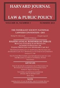 About the Harvard Journal of Law & Public Policy:The Harvard Journal of Law & Public Policy is the nation’s leading forum for conservative and libertarian legal scholarship, one of the most widely circulated student-edited law reviews, and the first and bestselling law review available for the Kindle. The Journal is published three times annually by the Harvard Society for Law & Public Policy, Inc., an organization of Harvard Law School students.Dynamic recent authors include Richard Epstein, Robert George, John Ashcroft, Judge Thomas Griffith, and Ron Paul. In the past, we have published pieces by former Chief Justice William Rehnquist, Justice Antonin Scalia, and Justice Clarence Thomas.In this Issue:A Collection of Articles from the Federalist Society National Lawyers Convention:- "Reflections on Hosanna-Tabor" by Michael W. McConnell- "Hosanna-Tabor and the Ministerial Exception" by Douglas Laycock- "Meet the New Boss: Continuity in Presidential War Powers?" by Michael D. RamseyArticles from the Fourth Annual Rosenkranz Debate: Resolved: Congress acted within its authority in enacting the Patient Protection and Affordable Care Act.- "The Constitutionality of the Patient Protection and Affordable Care Act: Swimming in the Stream of Commerce" by Laurence H. Tribe- "The Patient Protection and Affordable Care Act and the Breadth and Depth of Federal Power" by Paul ClementTwo Articles:- "The Availability of Common Law Privileges for Witnesses in Congressional Investigations" by Michael D. Bopp & DeLisa Lay- "The Ethics of Opposing Certiorari Before the Supreme Court" by Aaron TangAnd a note on "Arbitration, Class Waivers, and Statutory Rights."